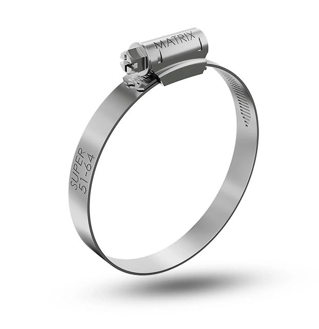 Medidas y materiales alternativos bajo consulta. Indicada para la fijación de mangueras flexibles. El tornillo y la carcasa más grandes permiten un mayor torque de apriete. Indicada para aplicaciones industriales y residenciales. Presenta bordes conformados en la opción de acero al carbono. Se puede aplicar con destornillador, Philips y llave de tubo