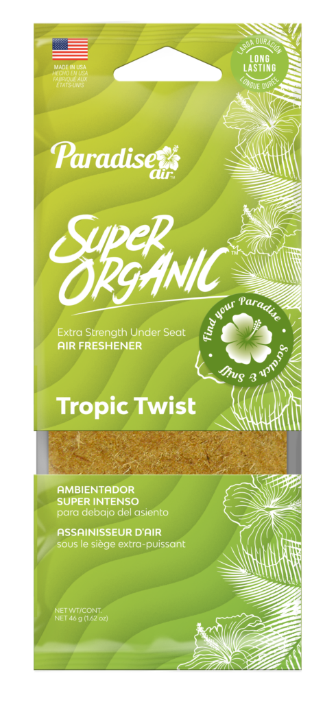 TROPIC TWIST ·Ambientador extra fuerte para debajo del asiento. ·Hecho en EE. UU. ·Úselo en su automóvil, casa u oficina. ·Fragancia de larga duración. ·Corte la bolsa y colóquela debajo de su asiento o en cualquier lugar donde desee un aroma fresco. La fragancia libera durante 75 dias. EAN: 810624030846