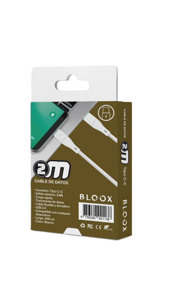 CABLE DE DATOS USB C a TIPO C (PVC) Cable flexible y duradero con protección extra Transmisión de datos de alta conductividad Salida máxima: 3.0A (carga rápida) Compatible con cualquier dispositivo Conexión: Tipo C-C (USB) Disponible en color Blanco Largo Total: 100 centímetros EAN: 4756262921138