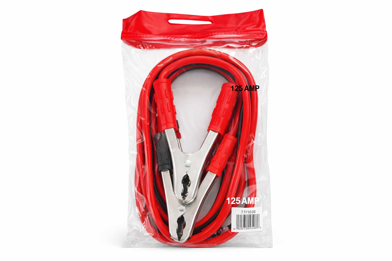 CABLE PARA BATERIA - 125AMP CHICOTE - PUENTE DE BATERIAS Corriente Máx: 125AMP Longitud del cable: 2.5m Tamaño de la pinza: 34x19cm Material del cable: Cobre Diámetro exterior del cable: 8mm Longitud del cable: 2.5m En bolsa de PVC para llevar BARCODE: 020972995036