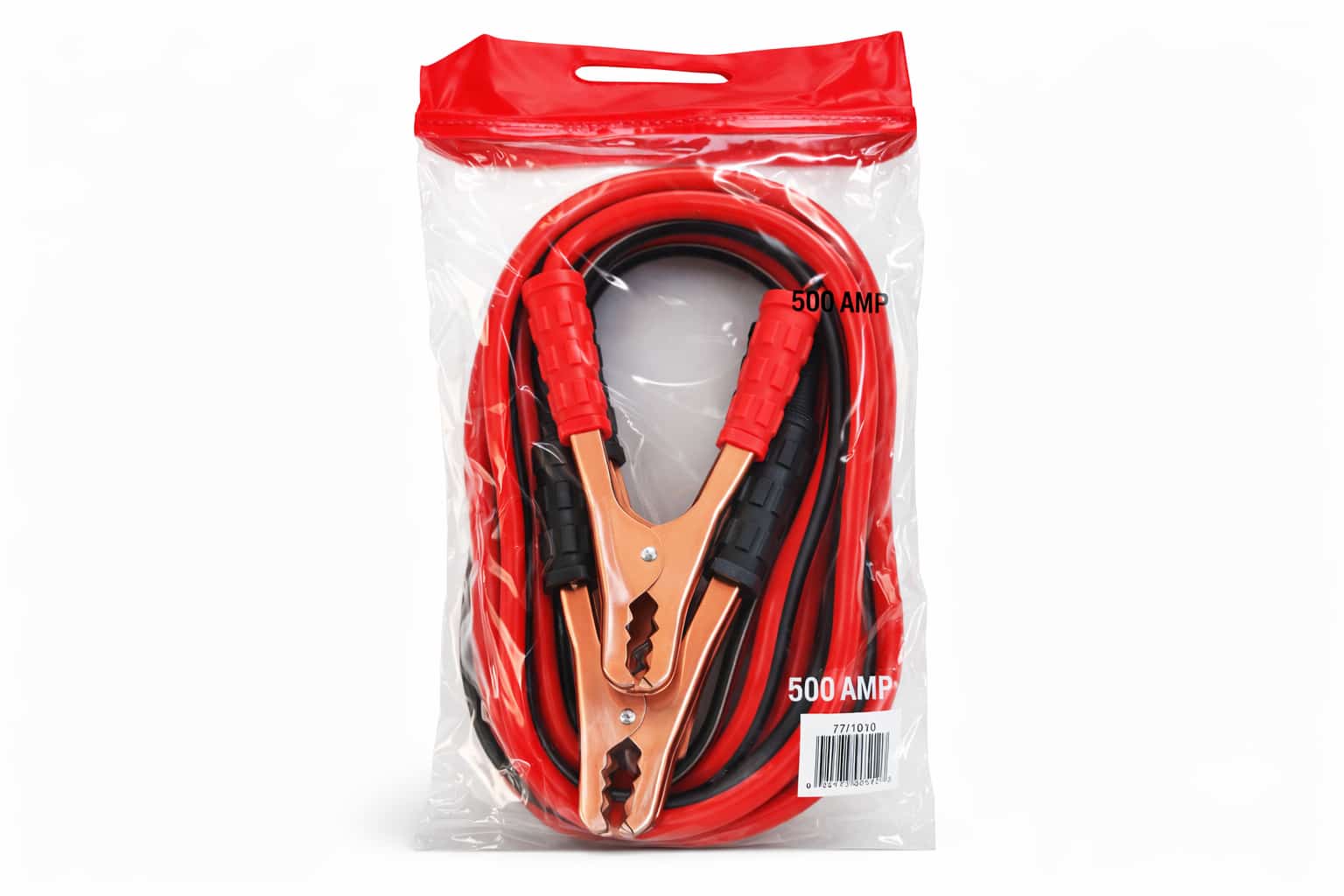 CABLE PARA BATERIA - 500AMP CHICOTE - PUENTE DE BATERIAS Corriente Máx: 500AMP Longitud del cable: 2.5m Tamaño de la pinza: 34x19cm Material del cable: Cobre Diámetro exterior del cable: 8mm Longitud del cable: 2.5m En bolsa de PVC para llevar BARCODE: 020973005123