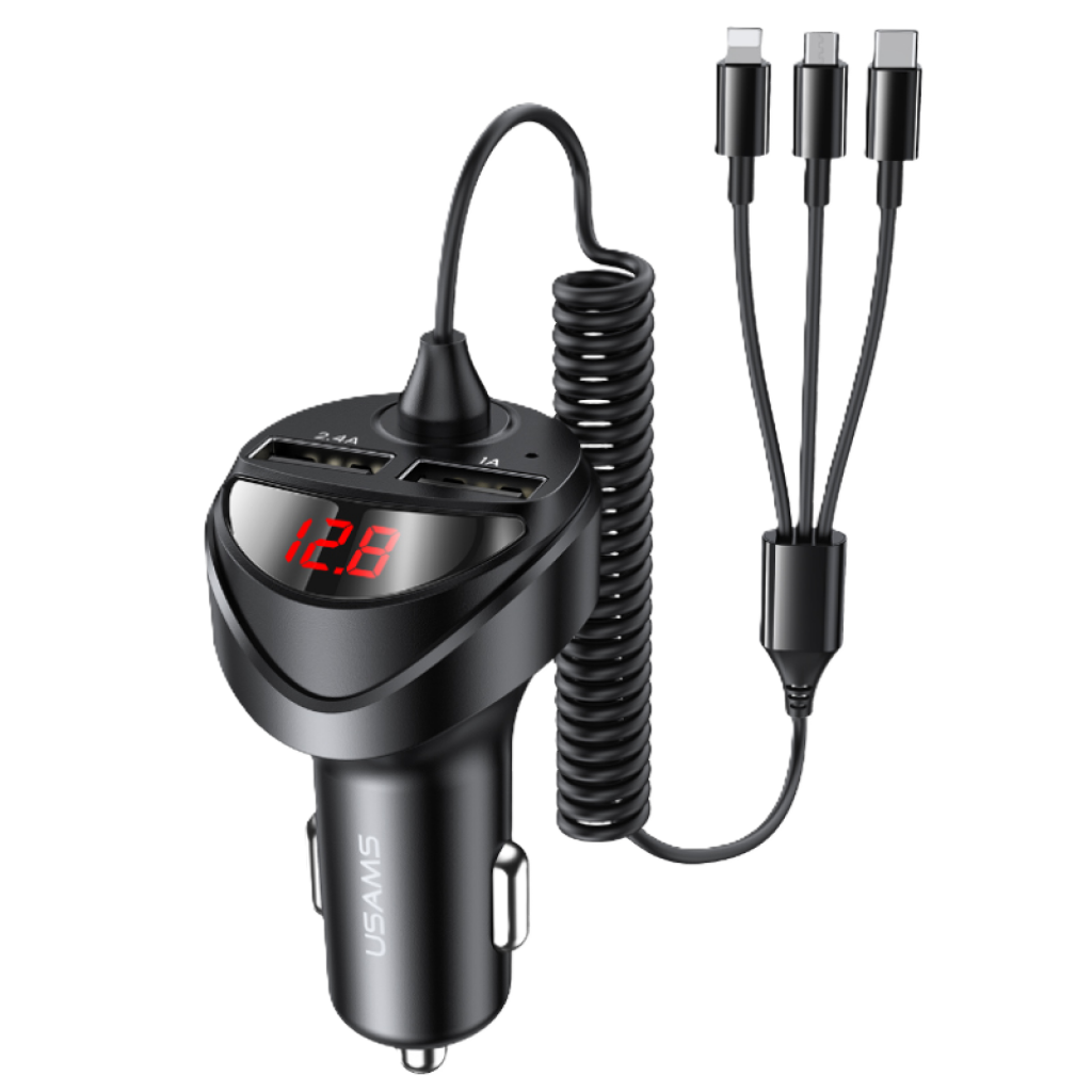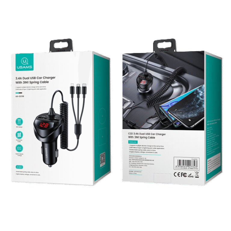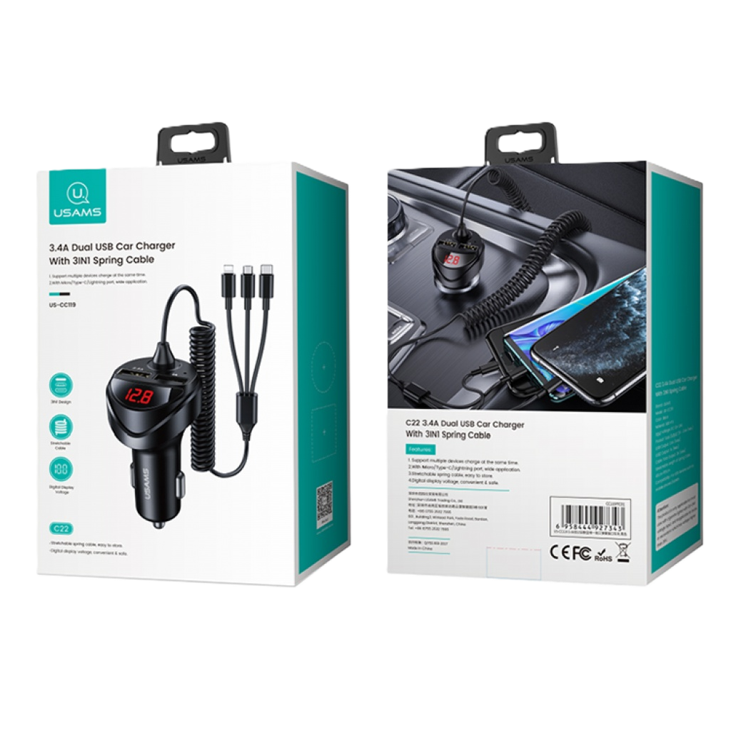 CARGADOR PARA AUTO C22 CABLE 3IN1 2-USB / 3.4A (CC119-SPRING CABLE)
