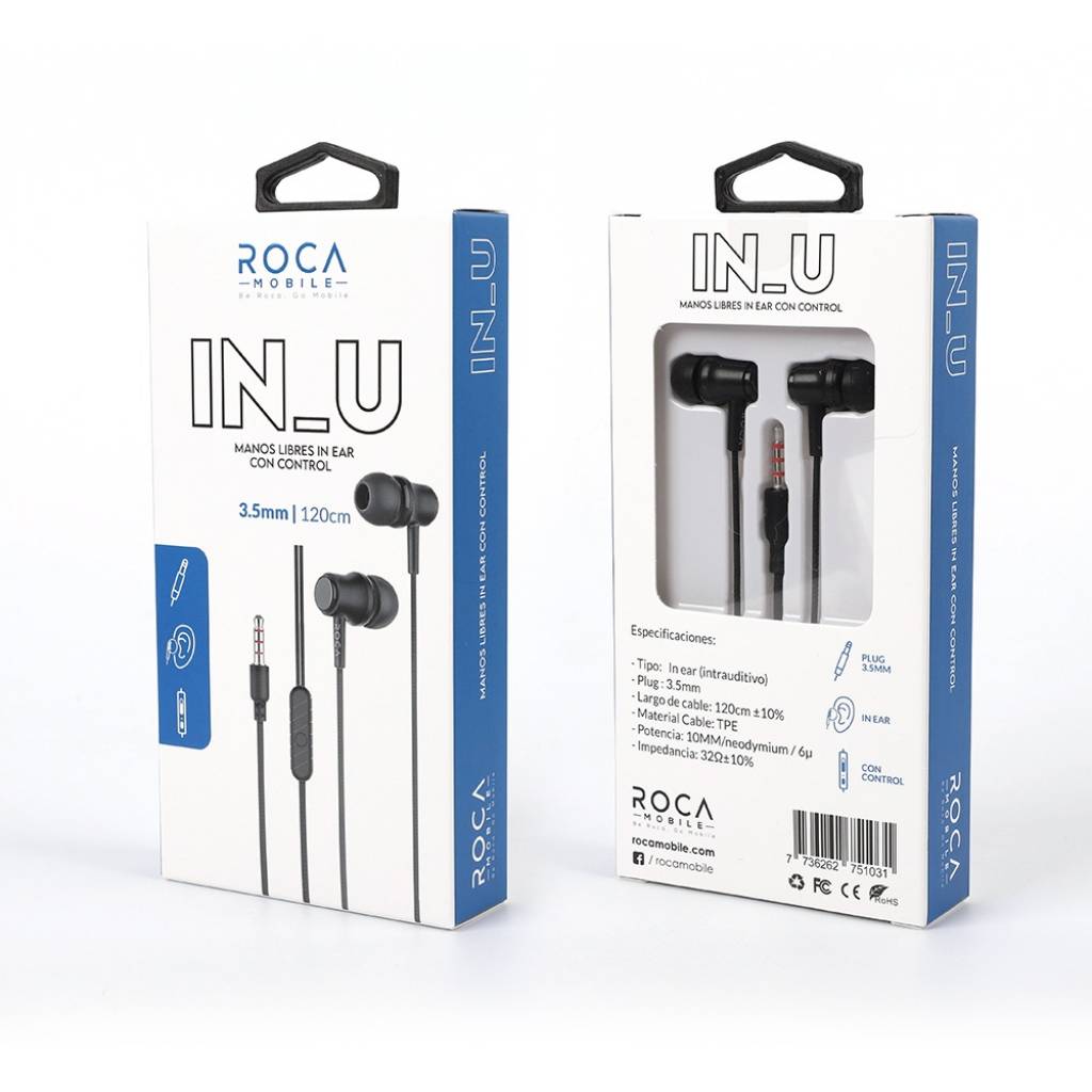 MANOS LIBRES IN_U 3.5MM (STEREO) Stereo / Universal / Intrauditivo Material Cable: TPE Tipo: In Eear Plug: 3,5 mm Micrófono incorporado +/- control Potencia: 3.5 MW Disponible en color Negro Largo de Cable: 120 centímetros EAN: 7736262751031