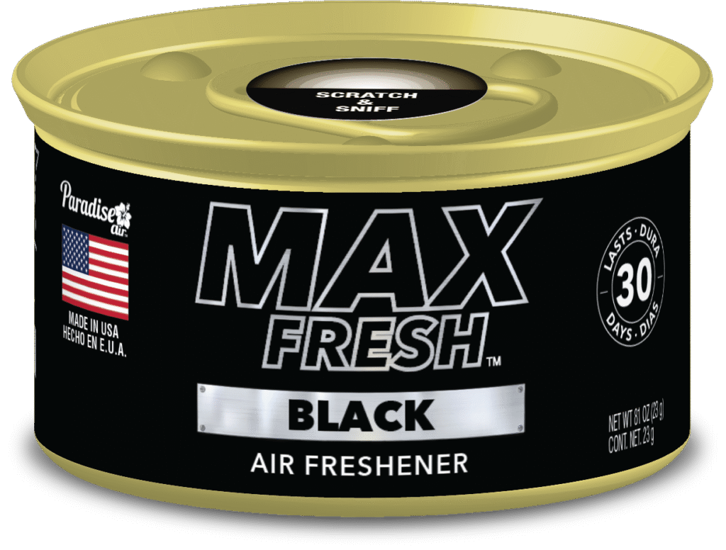 MAX FRESH 30 - BLACK -- Fabricado en los EE. UU. utilizando las mejores materias primas y componentes. – Fabricado con aceites aromáticos orgánicos y de alta calidad. – Innovación en fragancias: Mantiene el olor hasta 30 días – Huella de carbono reducida desde el recipiente de aluminio reciclable hasta...