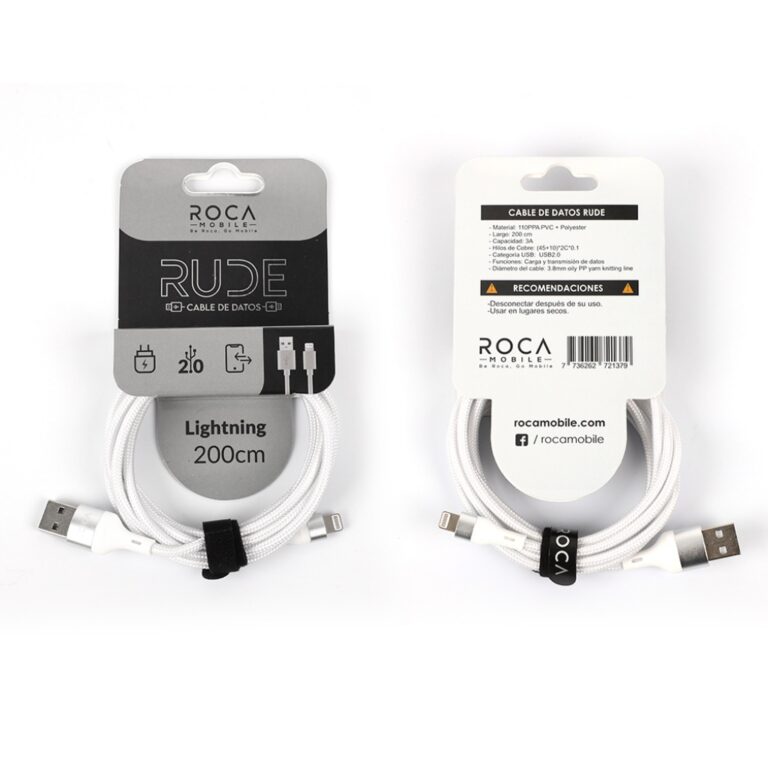 CABLE DE DATOS USB A / LIGHTNING Cable flexible y duradero con poliéster. ( Extemidades reforzdas ) Transmisión de datos de alta conductividad Salida máxima: 3A (carga rápida) Compatible con cualquier dispositivo Conexión: Tipo Lightning (USB 2.0) Disponible en color Blanco Diámetro del cable: 3.8 mm Largo Total: 200 centímetros...