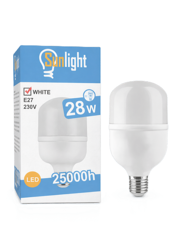 ILUMINACION FRIA LUZ BLANCA - 28W Más de 25000 horas de vida útil Respuesta de encendido inmediata Materiales: Plástico con Casquillo de Aluminio Tipo de Led: SMD 2835 6500 K - AC 220/240V Luminous Flux: 2240Lm 230V - 50/60Hz Tamaño: ∅ 100 mm x largo 169 mm Angulo de Iluminación:...