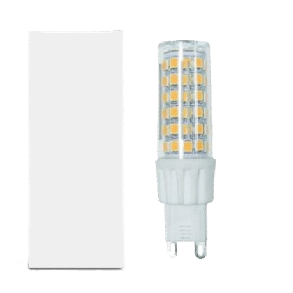 ILUMINACION FRIA LUZ BLANCA - 6W MODELO: G9 Más de 50000 horas de vida útil Respuesta de encendido inmediata Materiales: Plástico con terminales de aluminio Tipo de Led: SMD 2835 6000 K - AC 85/265V 170-260V - 50/60Hz Lúmenes: 480-Lm Tamaño: 21 x 70 mm "Dimerizable" EAN: 8658445625382