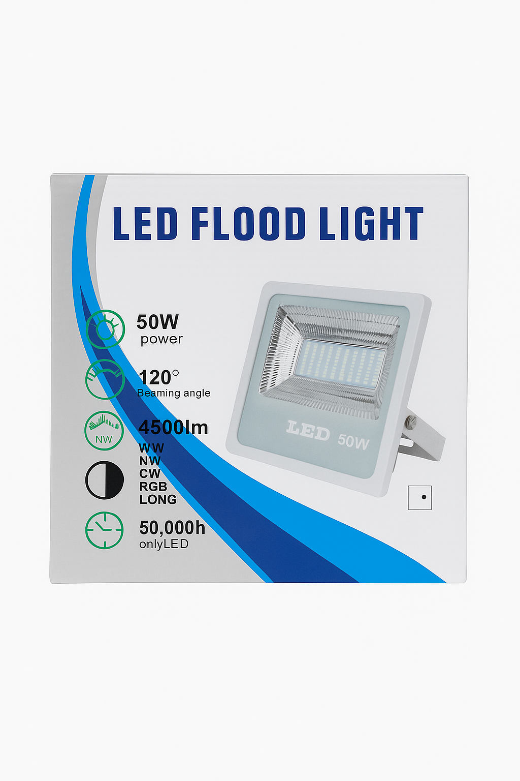 LED FLOOD LIGHT ILUMINACION FRIA LUZ BLANCA - 50W BS-108A(181016) Más de 50000 horas de vida útil Respuesta de encendido inmediata Materiales: Aluminio / Vidrio Templado Grado de protección: IP65 MultiLED=50W / REFRACTARIO 6000 K - AC 85/265V LM/W: 4500 lm - Fluorescente 220V - 50/60Hz Medidas: 29 x 27,5...
